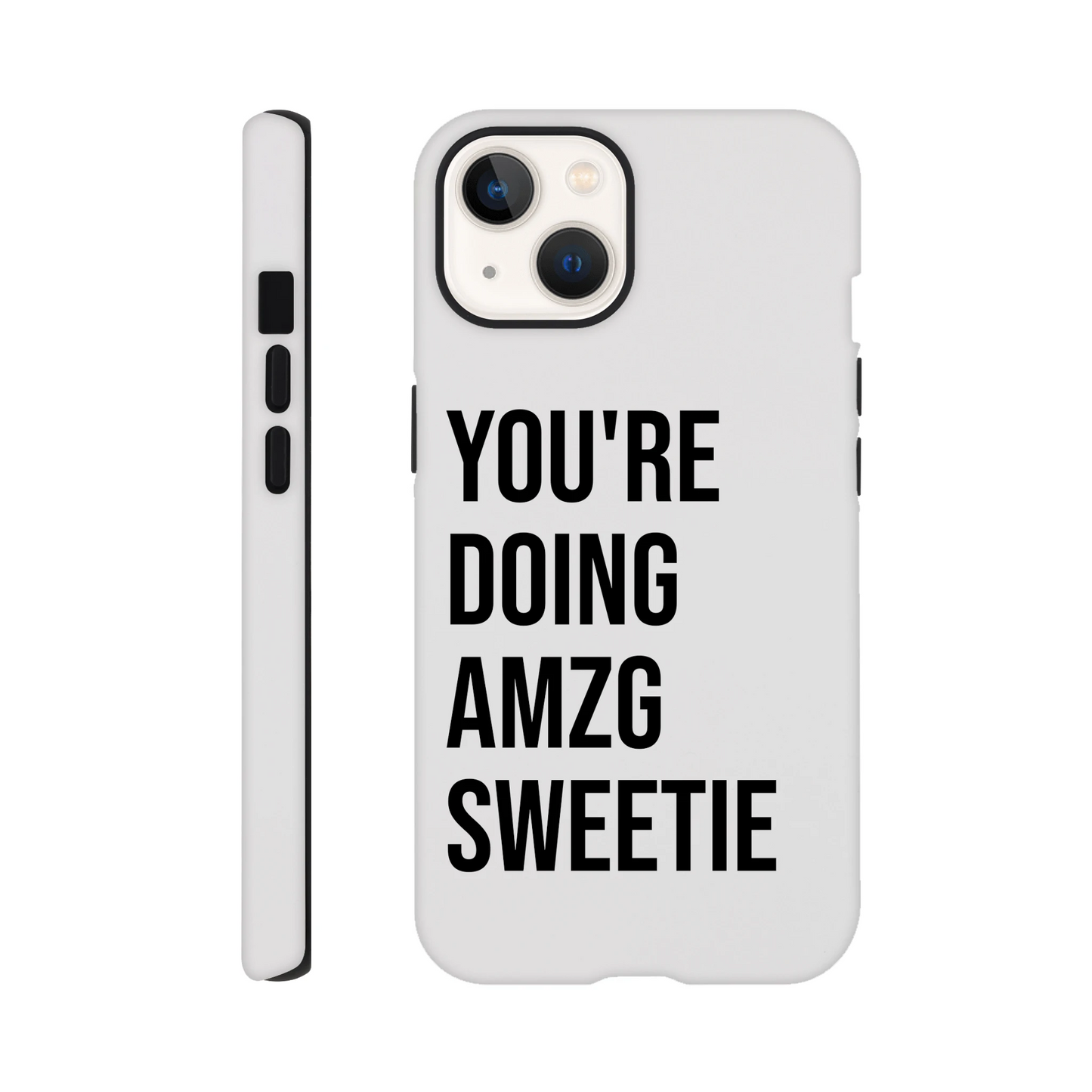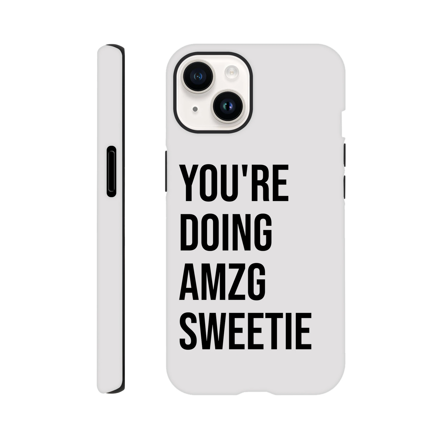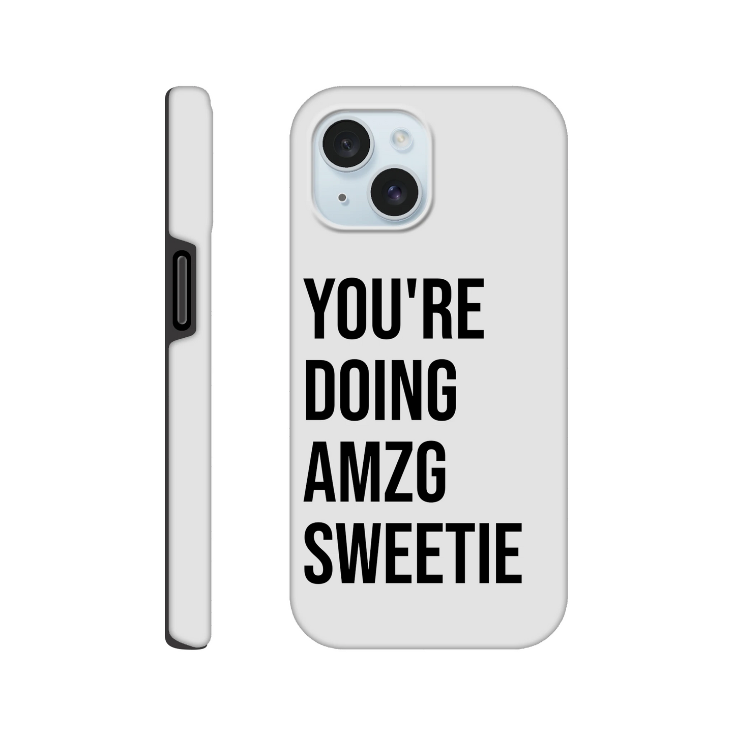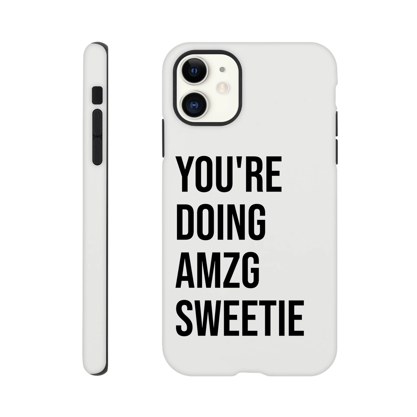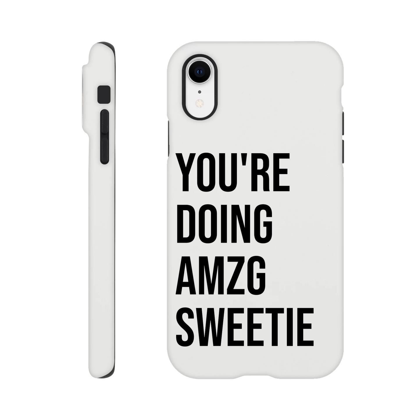 YOU'RE DOING AMZG SWEETIE | iPhone Tough Case, Black Lettering