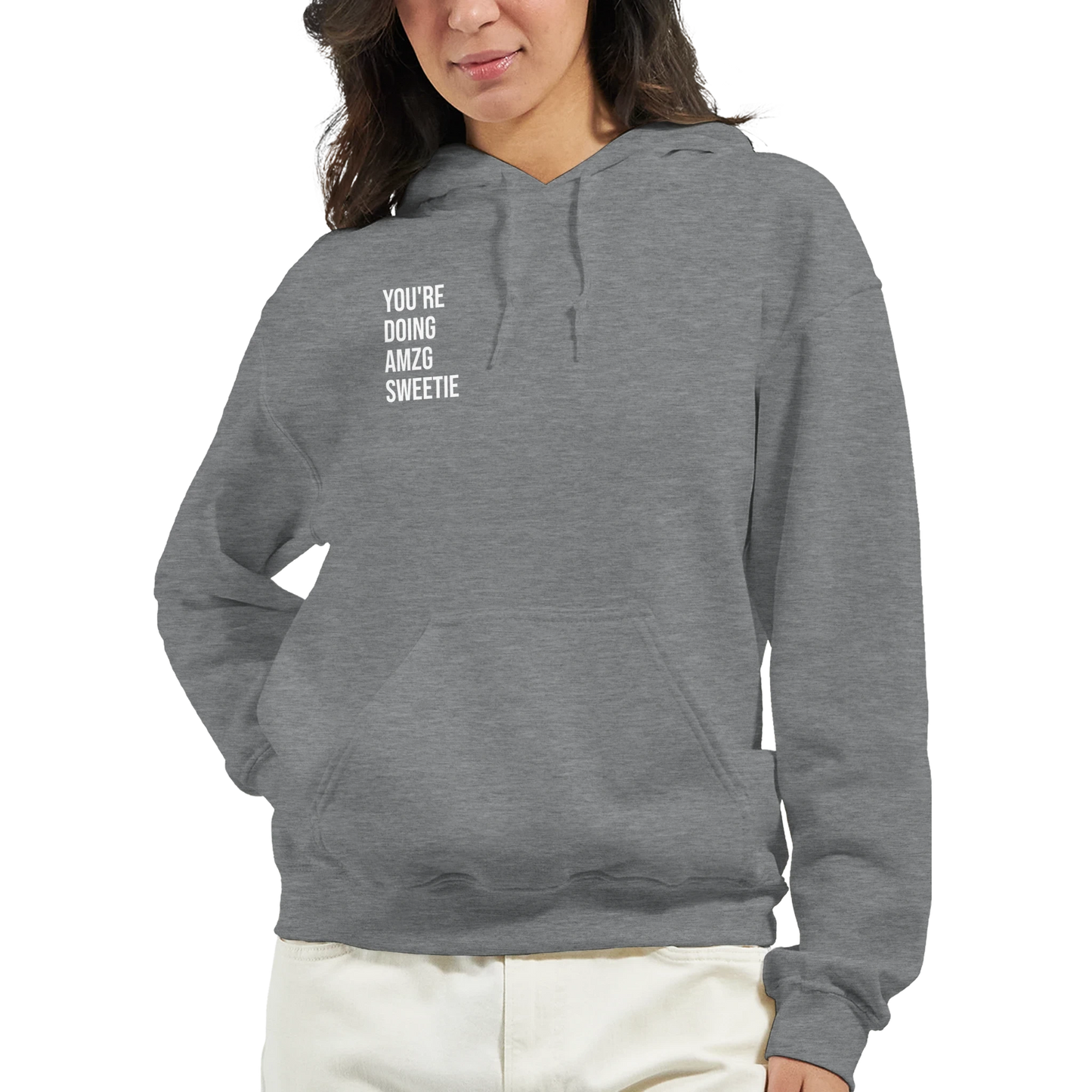 Stay stylish and cozy with our You're Doing Amazing Sweetie Hoodie, the perfect blend of comfort and motivation for your everyday wear.