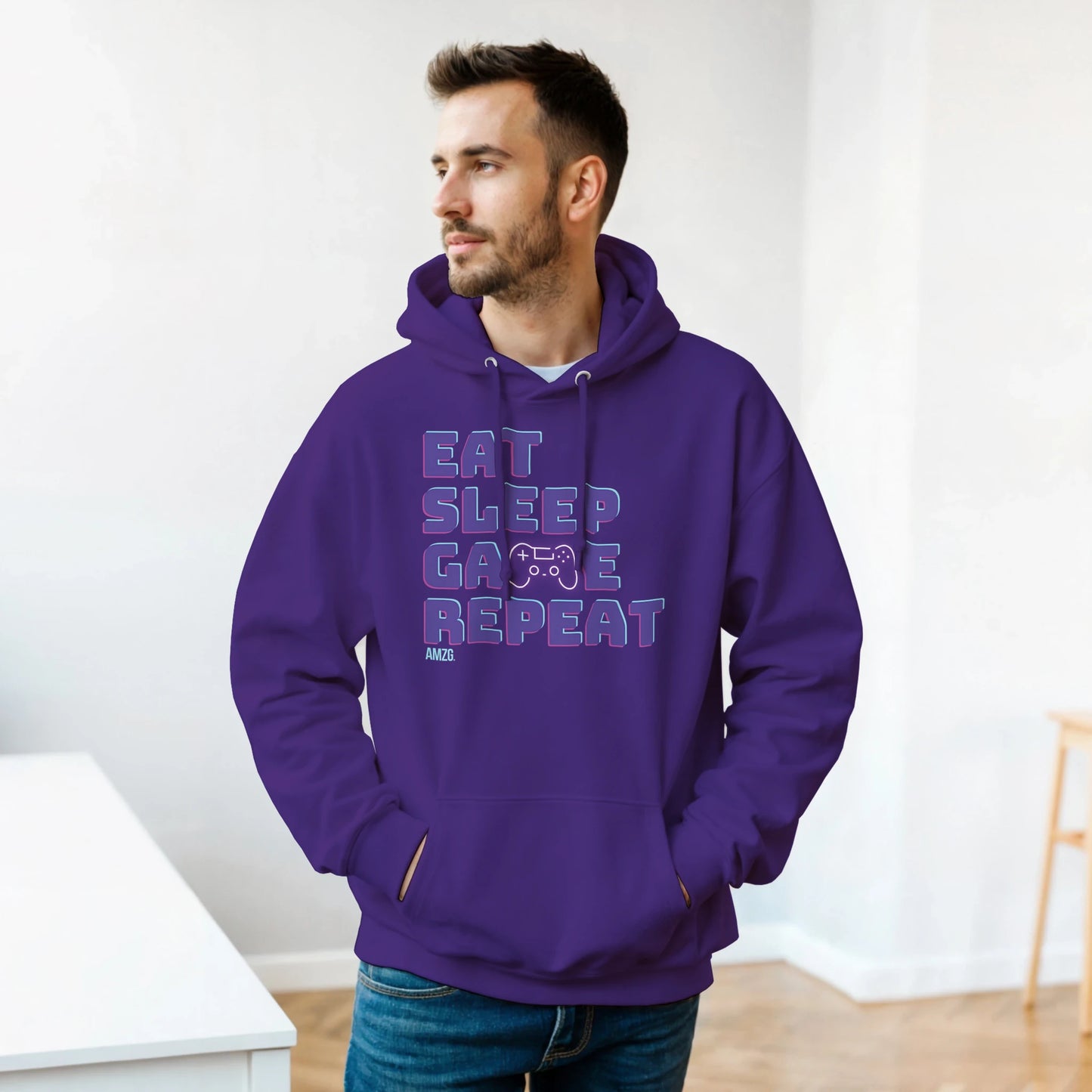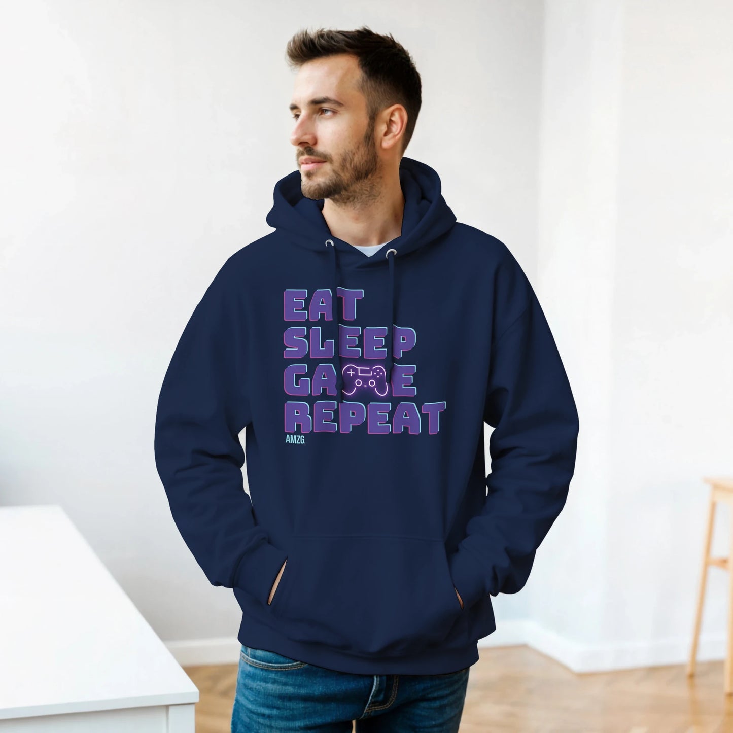 The ultimate gamer routine—on a hoodie. "Eat Sleep Game Repeat" isn’t just a phrase, it’s a way of life. Made for late-night marathons and all-day grinds, this ultra-comfy hoodie is perfect for anyone who lives for the leaderboard