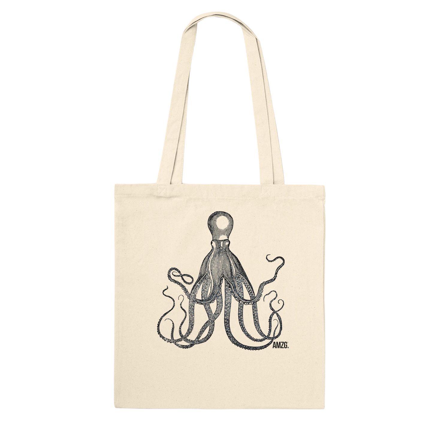 Introducing our Eco-Friendly Cotton Tote Bag featuring a striking octopus design, perfect for showcasing your unique style while contributing to a sustainable future.