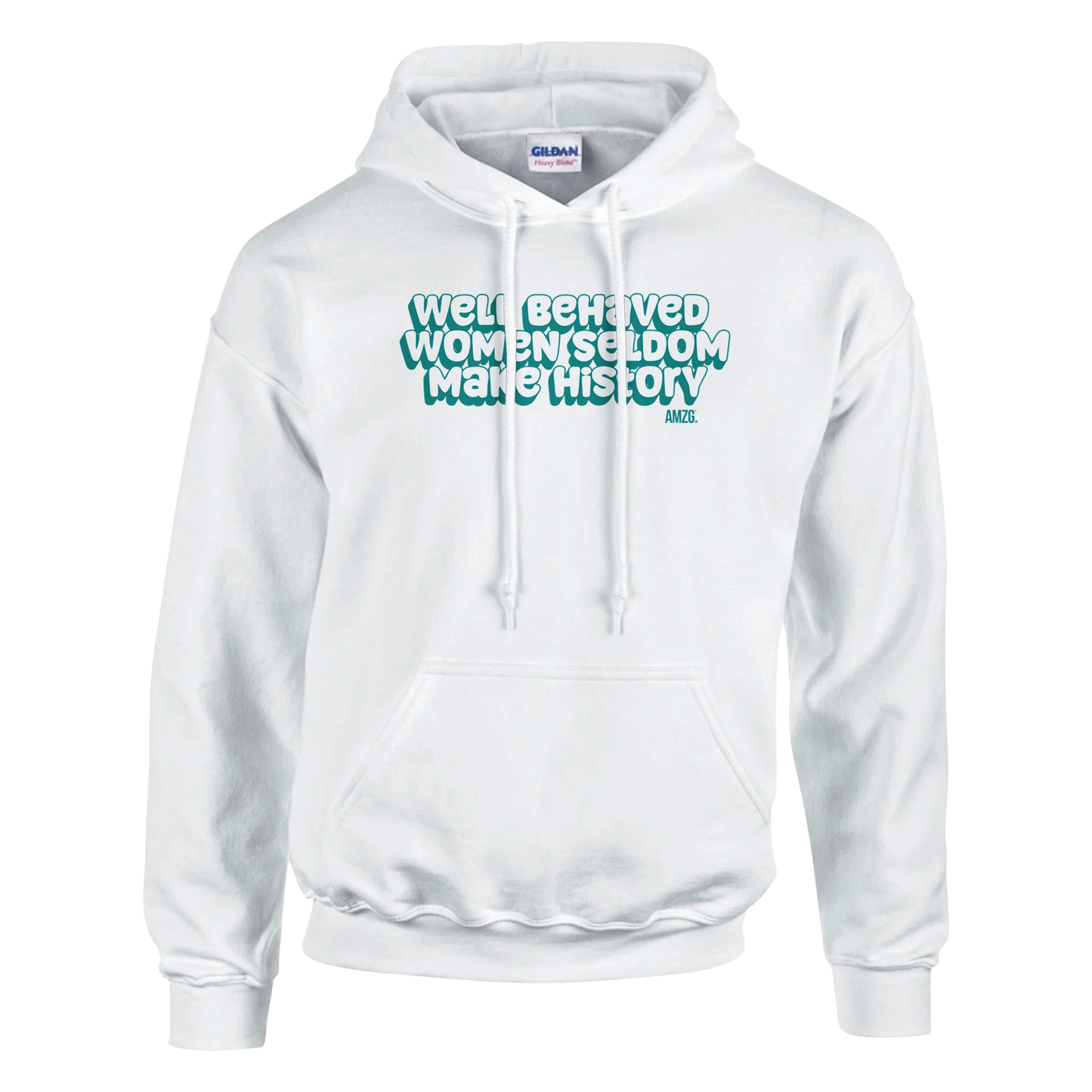 Break the mold and stay cozy while doing it. This fleece-lined hoodie puts the legendary quote “Well Behaved Women Seldom Make History” front and center, inspiring fearless energy with every wear.