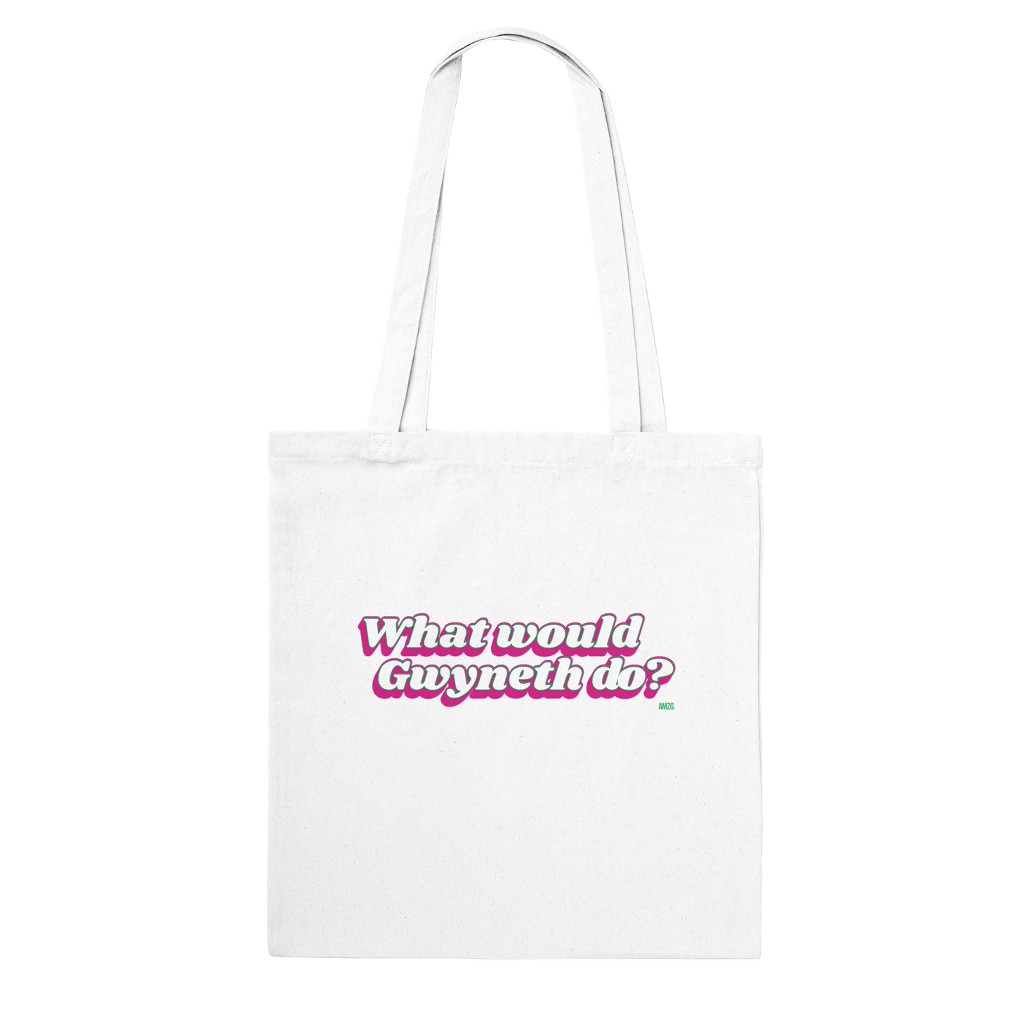Cover all your grab and go needs with AMZG's official What Would Gwyneth Do long handle tote bags while being eco-conscious. These tote bags feature reinforced stitching on handles for more stability.