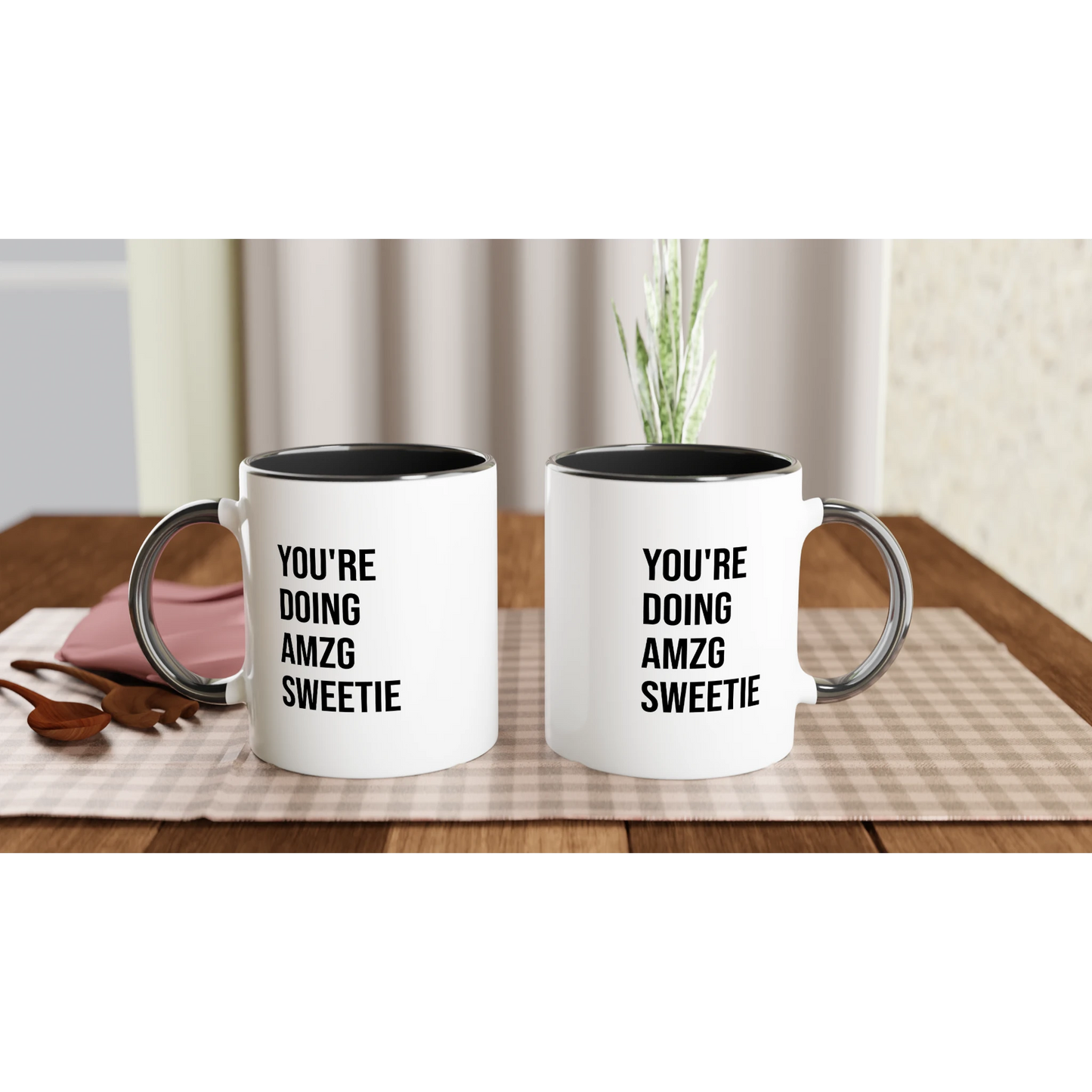 YOU'RE DOING AMZG SWEETIE | Glossy 11oz Ceramic Mug, Black Lettering